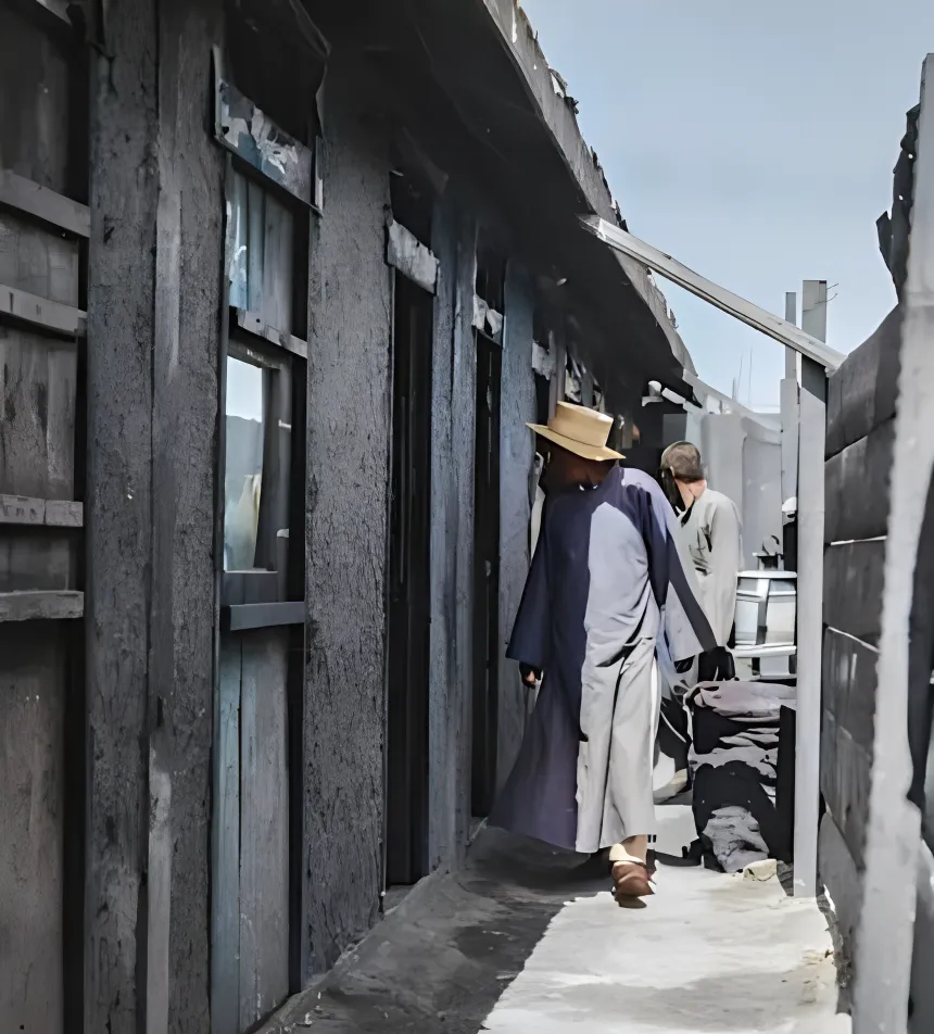 这条黑木板夹出来的巷子,就是哈尔滨城里那种见不得光的地儿,戴草帽的嫖客侧着身,眼睛贴着门缝,脚下是被日头烤白的水泥地,另一人背过身去装作路过,动作轻飘飘,心里打着鼓,妈妈说,那时候人活得窘,连看也要偷偷看。