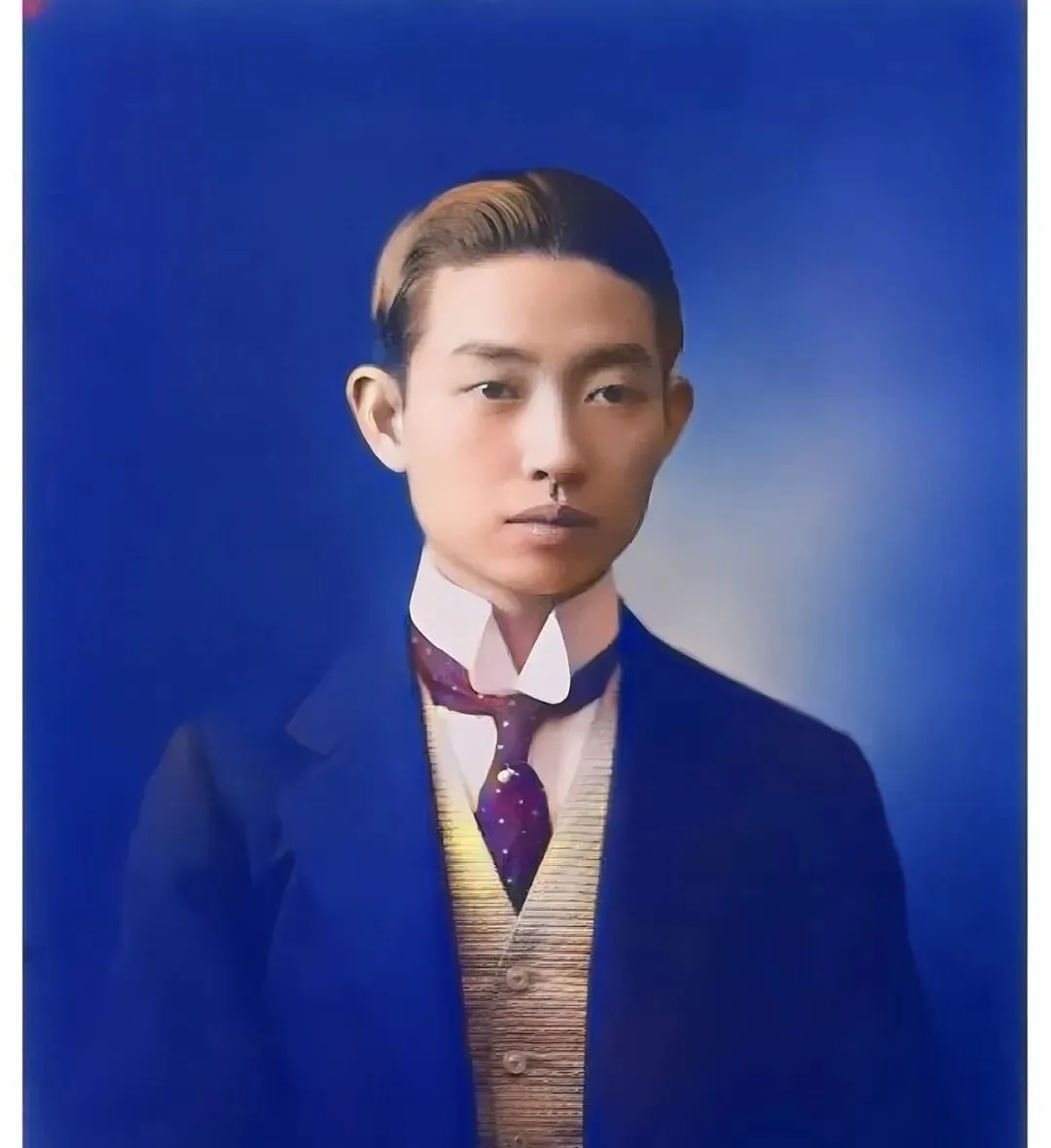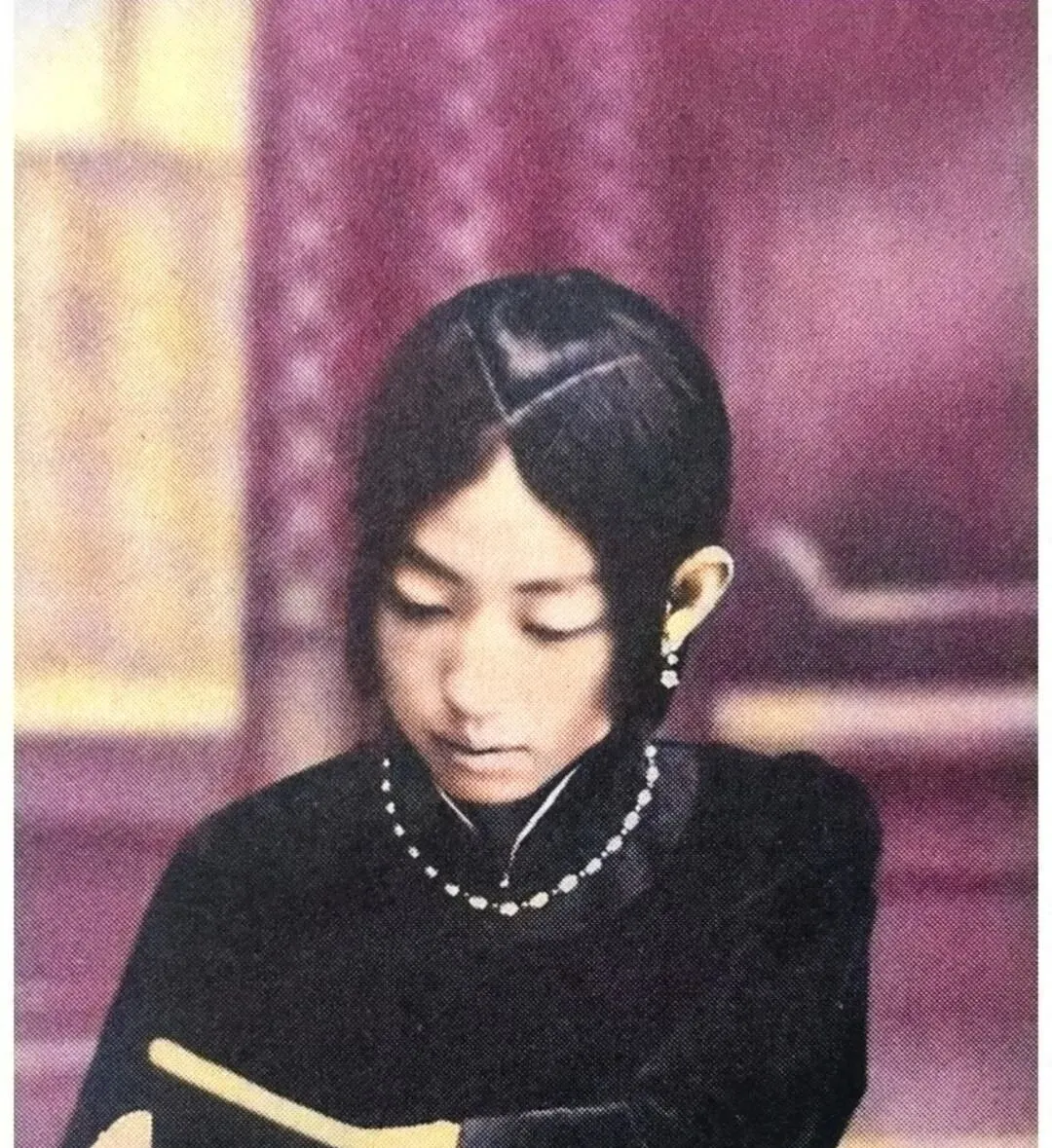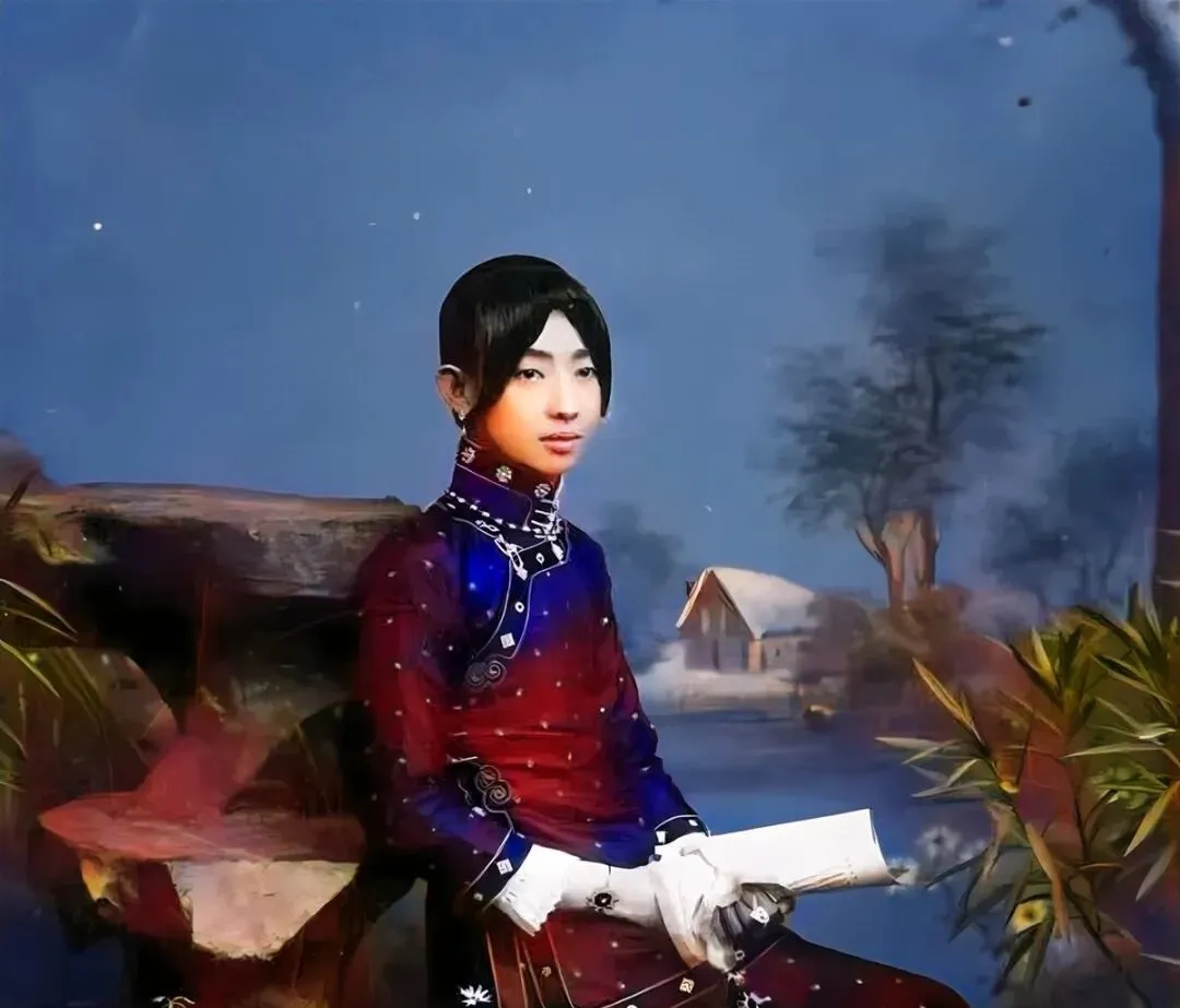 这个小小的清秀面庞叫少年梅兰芳,圆额高光,嘴角微抿,衣襟是细密的缎纹,颜色淡却不失亮泽,一看就是科班里被师父盯得严的娃,站得直,眼神里有点倔,更多是安静,他后来那些台上的沉稳劲儿,就从这份“静”里长出来的。