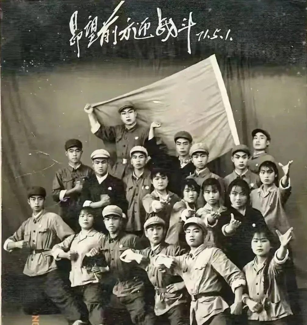 这张黑白照叫宣传队定格,背景布拉得平平整整,前排半蹲后排站立,手势有拳有掌,旗子横在肩上,衣服口袋鼓鼓囊囊,像是刚从排练场下来,老师父说照这种集体相,口令一定要短,三二一,谁眨眼谁重拍,片子贵着呢,一次按糟了心疼半天。