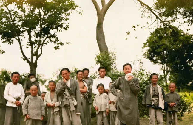 再看回这第一张,树杈在天底下分开,男的女的老的小的都站得端端正正,衣摆被风一撩,像是要往前迈又忍住,摄影师让他们别动,他们就真别动了,手里那口馍还在,嘴角的盐味没散,村东头有人小声说别光看,等会儿把碗洗了晒一晒,明天好接着用,这些碎话像针线一样,把日子缝得紧紧的,现在我们刷过一屏又一屏,图像多得看不过来,可被记住的还是这种一眼能闻出汗味的片段。