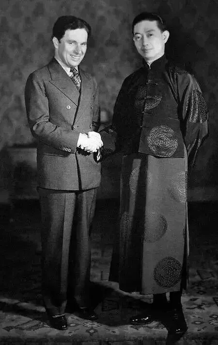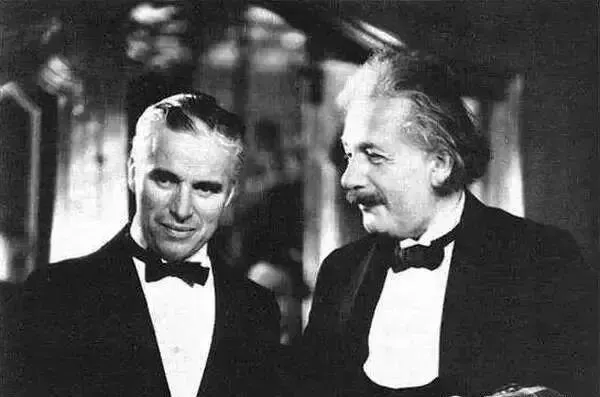 下面两张也都是卓别林,一张是1931年与爱因斯坦的合照,一张是1936年在上海与梅兰芳的合影