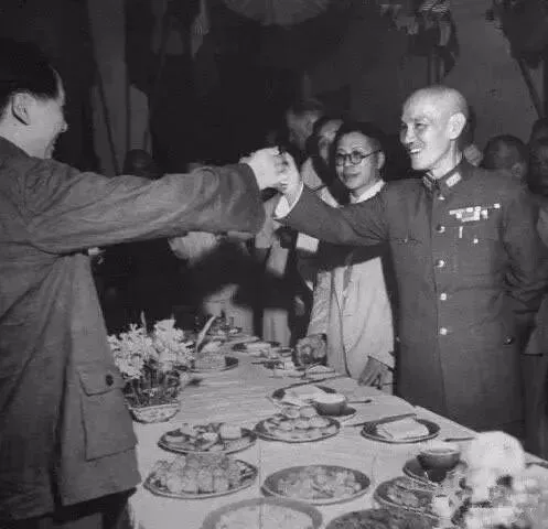 1945年,重庆谈判。这也可能是他俩唯一的一次干杯。