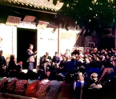 70年代蒙泉群众集体收听中央人民广播电台新闻场面