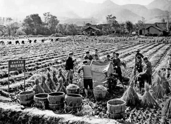70年代蒙泉公社稻谷收割现场