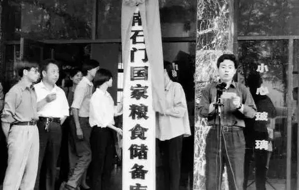 90年代石门县国家粮食储备库建成,时任县委副书记郑维改讲话。杨昌伟摄