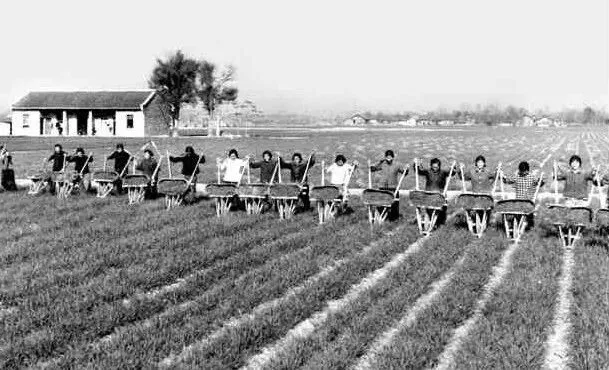 1978年易市公社八一大队社员们集体施肥现场