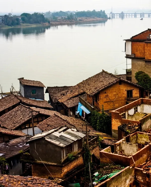 那时候的江边,一栋挨着一栋的老房子,屋顶的瓦片深一块浅一块,有些都碎了,可里头照样住着人家。