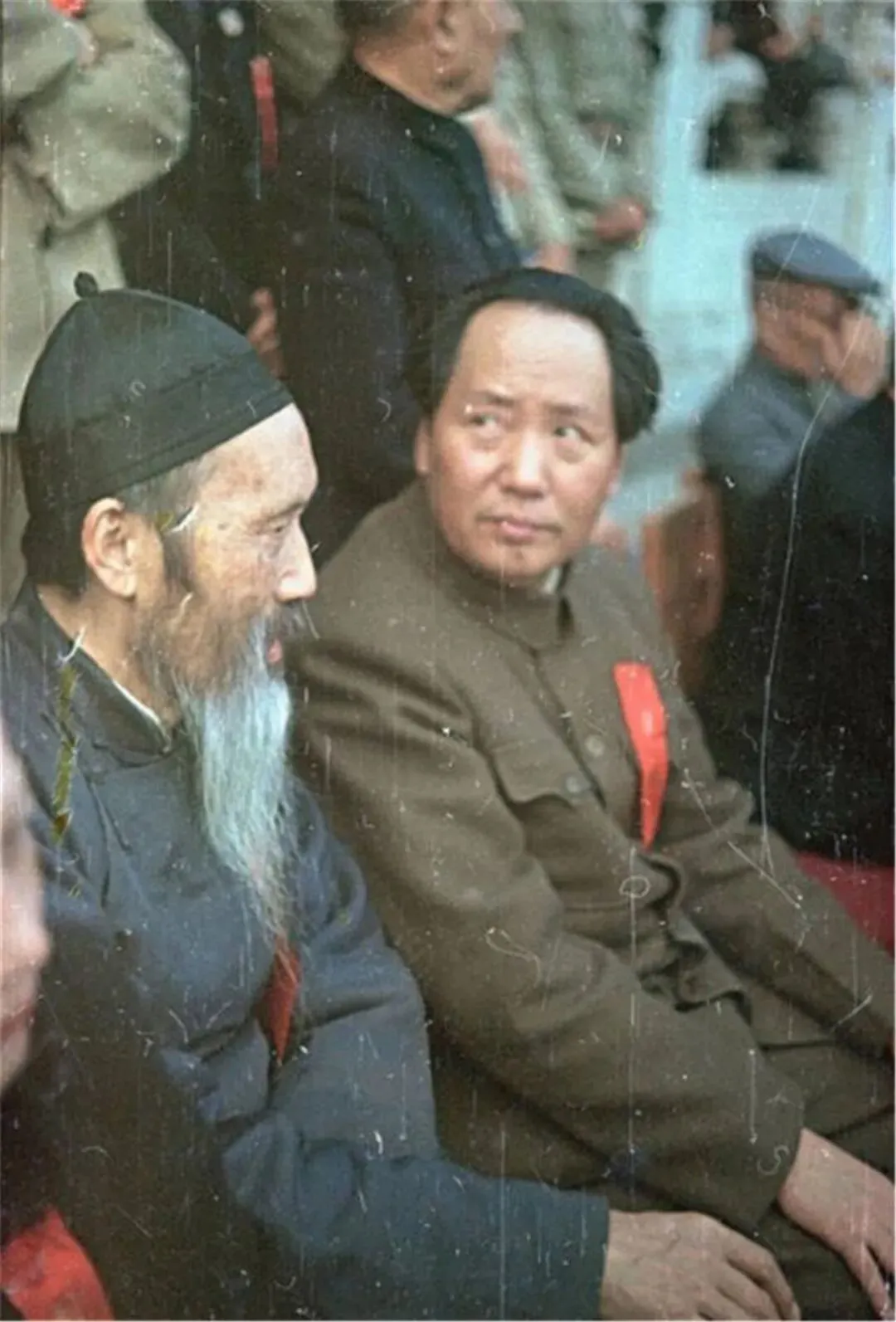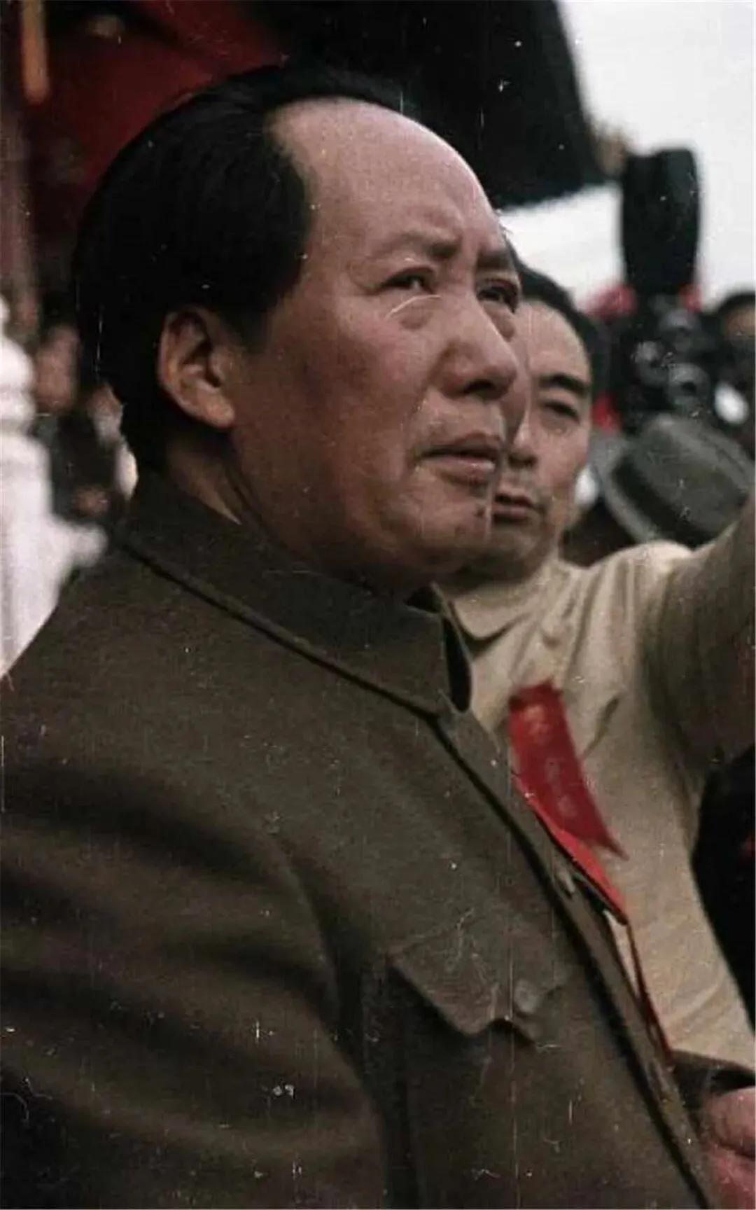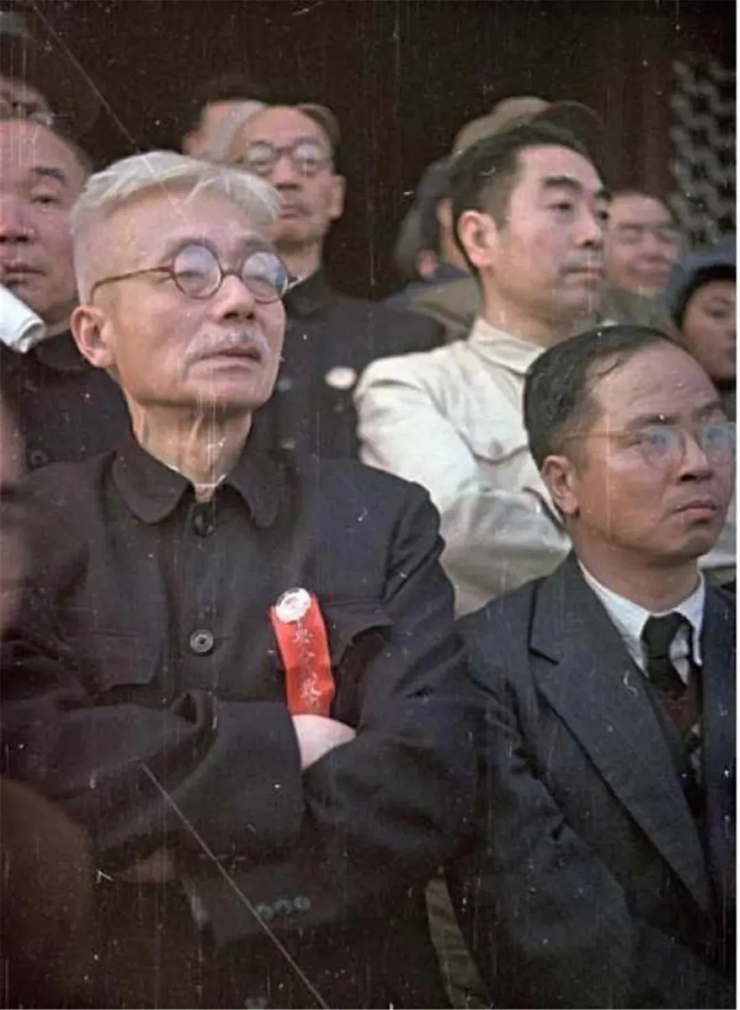 但不知道什么原因当阅兵仪式开始以后,周总理却退到了开国大典城楼上观礼嘉宾的第三排,站到了林伯渠后面的一排观看。