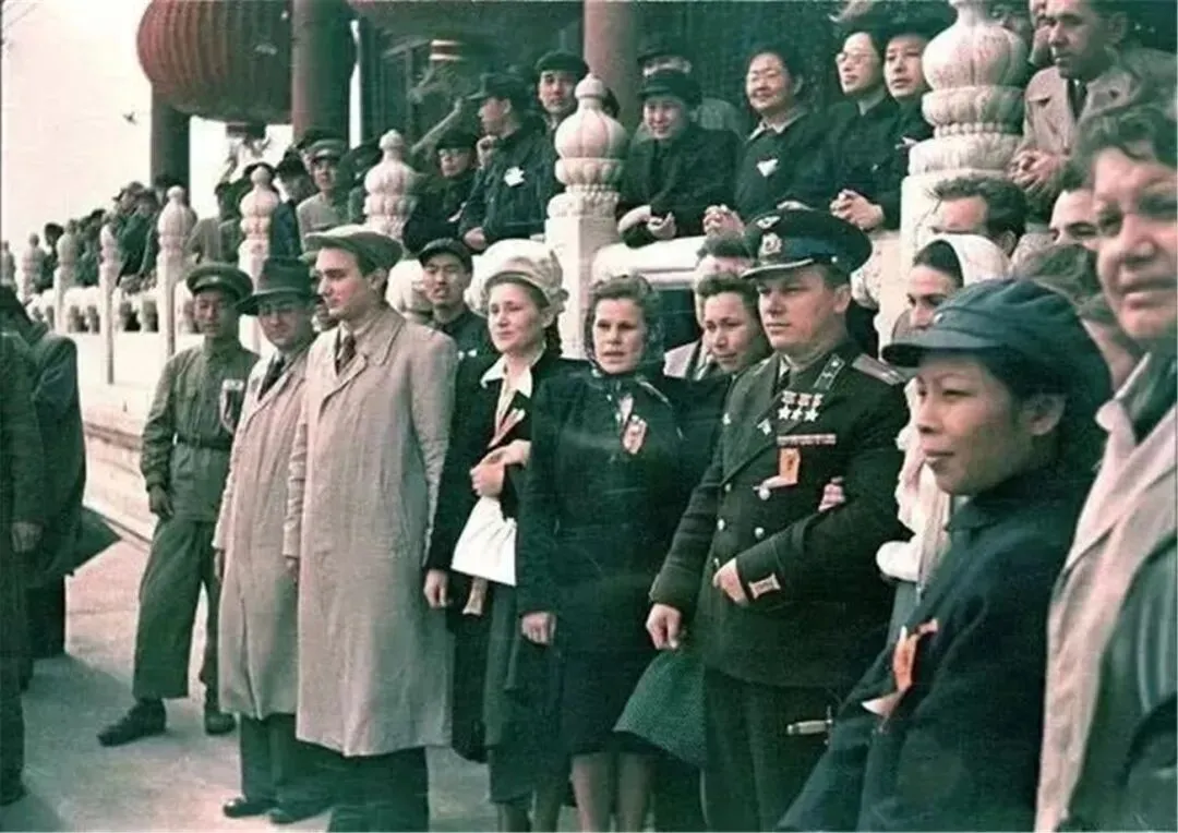 照片中靠左侧穿苏联空军军服的就是伊凡·尼基托维奇·阔日杜布,三次苏联英雄获得者,击落德军飞机62架,是同盟国头号空军王牌。1949~1950年初,第一次上海轰炸后,阔日杜布率苏联航空队参与保卫上海空域的战斗,成功挫败了逃往台湾的国民党反动派对上海的轰炸企图。