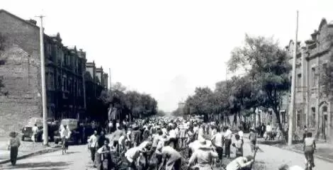 这活儿叫拆除有轨电车铁轨,街心沟里挤满人,肩扛撬棍,手抡铁锤,汗把背心浸得一块一块,孩子在旁边递钉子,锵锵的声浪一阵接一阵,过去讲集体出力,今天讲专业队施工,变的是办法,不变的是把活儿干利索的心气。