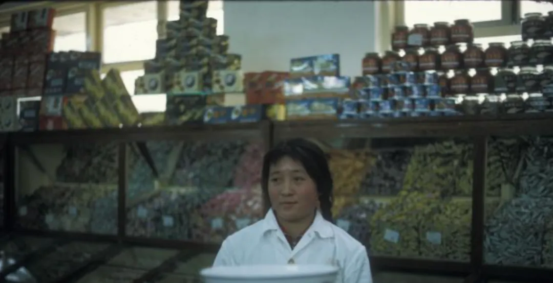 这个角落叫副食柜台,玻璃仓里堆成小山的奶糖、大白兔、话梅,营业员穿白大褂,手上戴着黑边袖套,秤盘里一把糖,砝码一落准得很,过生日能抓两把,回家拆开纸吮一圈,甜味黏在牙缝里,舍不得咽。