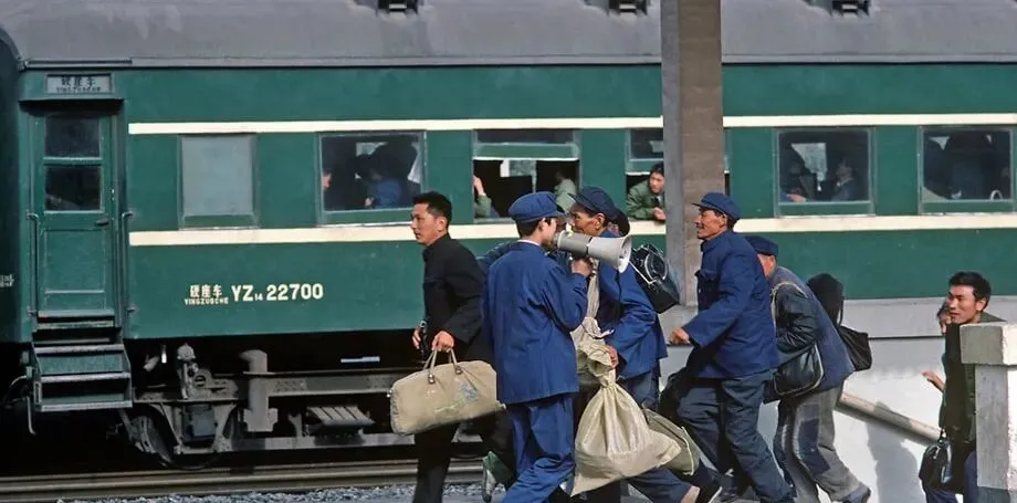 这个场景叫赶绿皮,车厢编号清清楚楚,站台上小喇叭呜啦啦喊候车,布包挎在肩上,麻袋拎在手里,检票员一挥旗,人群一股子往前涌,谁都怕晚半步上不了车,车窗里探出脑袋招呼亲戚,话没完车就开了。