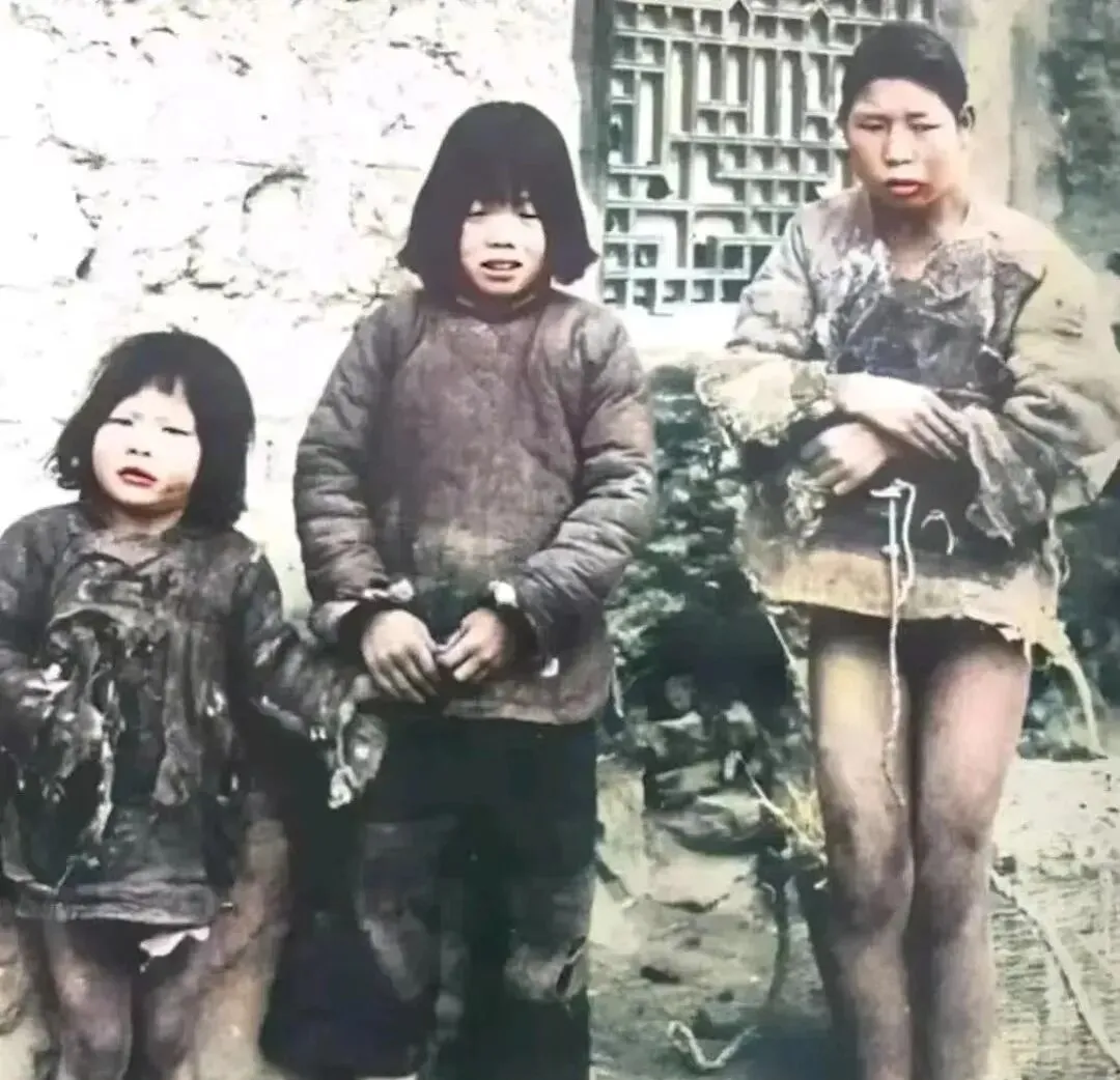 这张最揪心,衣裳破到线头全翻出来,左边的小姑娘脸被冷风刮得通红,中间的孩子攥着手不敢松,右边这位连裤子都顾不上穿齐,什么叫穷得穿不起裤子,照片就是答案,放到现在,孩子们穿上羽绒服跑进教室,取暖片一响,冬天就被挡在了窗外。