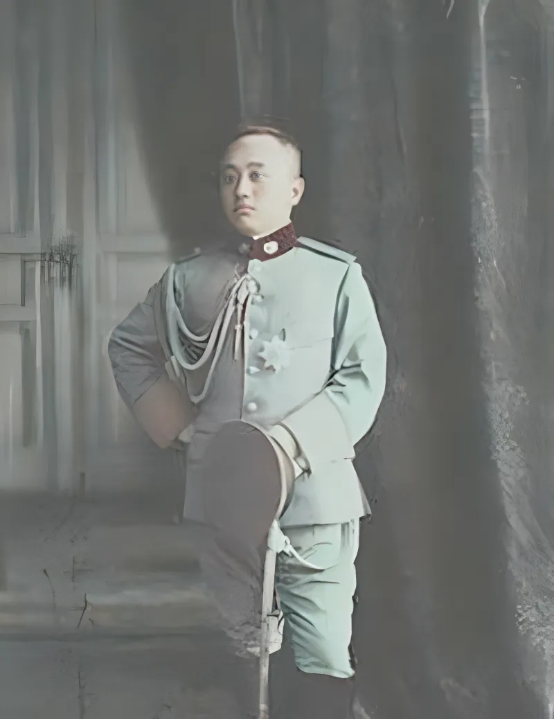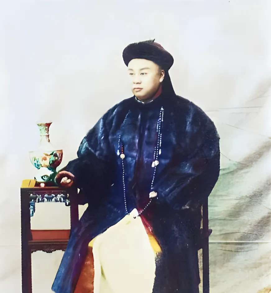 这位穿着深色皮裘坐着的年轻人,绒帽压得低,旁边一只彩釉瓶子摆着显眼,衣襟的毛绒一圈圈,沉得很,灯光打在脸上,白净里露出点稚气,这样的打扮,一看就是家里底子厚的,他那一代人,学西法也学,守祖制也守,结果两边都没站稳,走到中间就被历史推开了。