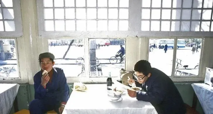 这间白窗格的叫国营饭馆,桌布硬梆梆的,碗里一碗炸酱面配两瓣蒜,旁边一瓶北冰洋立得直,陌生人拼桌也不尴尬,吃完抹嘴拍拍身上面粉屑,一脚踏回到阳光里。