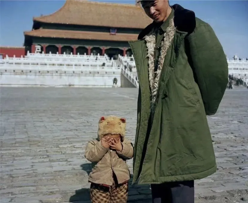 这个大毛领叫军大衣,小孩头上戴着虎头帽,手被冻得通红,还不肯塞进袖子里,爸爸站在一旁笑,拍完照把他往怀里一塞,暖和劲儿一下子就窜上来,那时的冬天冷是真的冷。