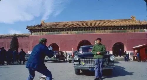 这动作你一看就明白,师傅半蹲着举相机,游客把手插进军绿棉袄口袋里,车牌亮晶晶的正好当前景,拍完当场收取票,回头在相馆等冲洗,拿成片那一刻,心里有种要发喜糖的劲头。
