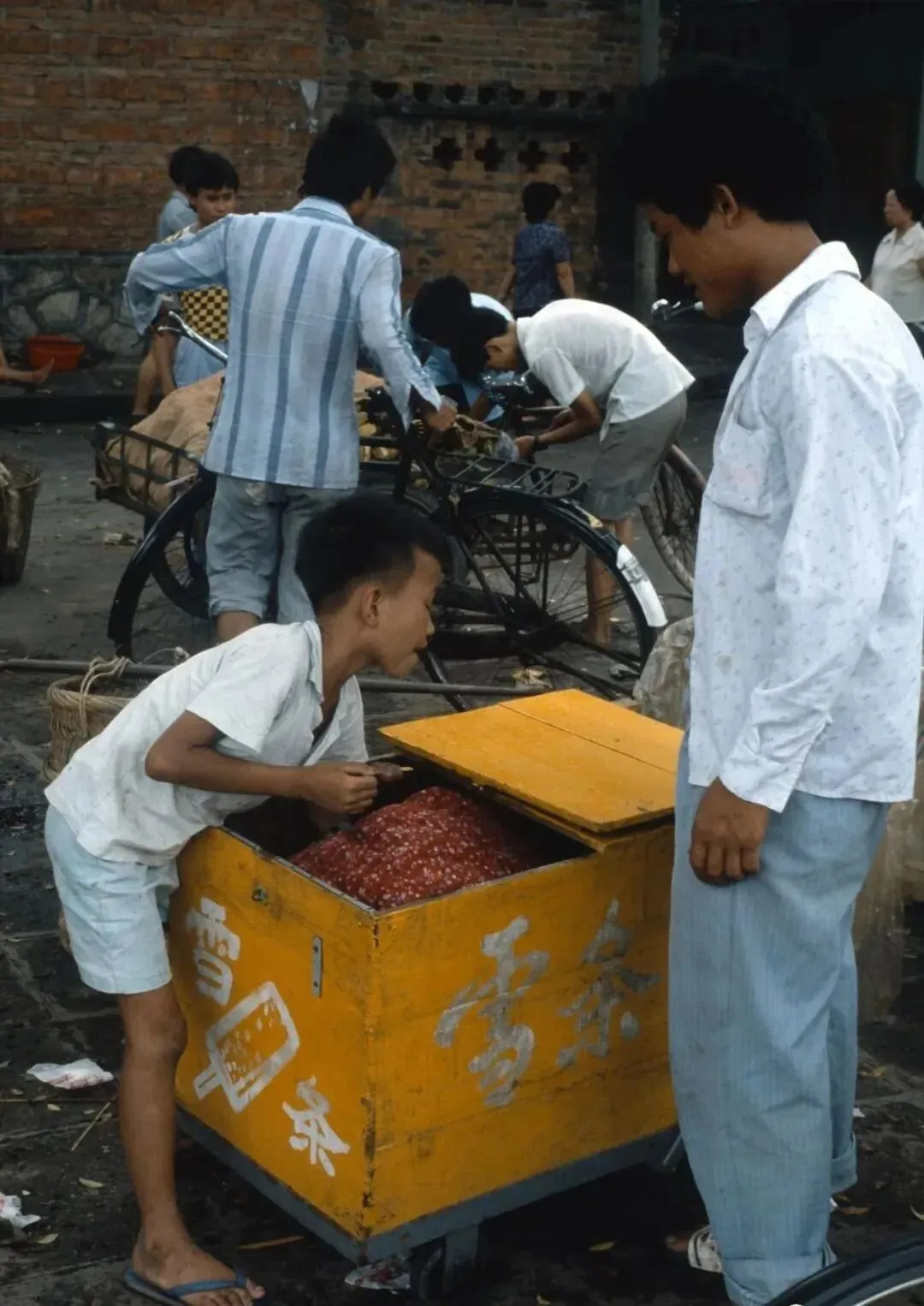 6.卖雪条的孩子,一边吃着,一边卖着。