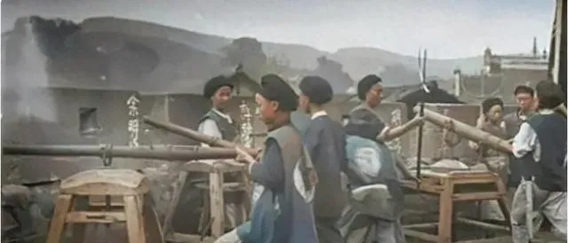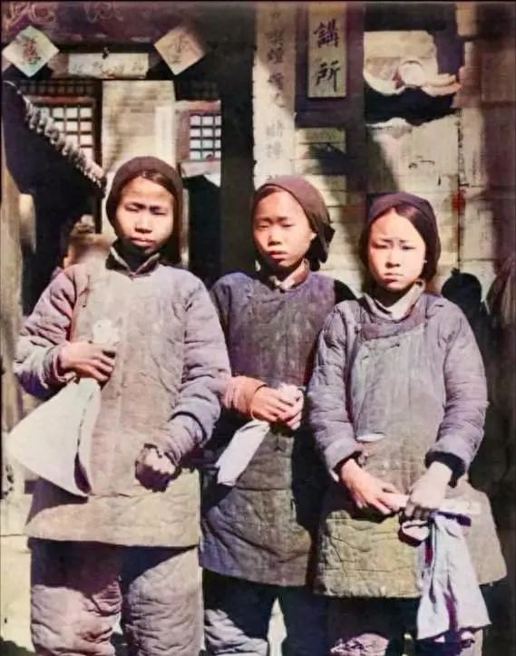 这仨小人儿是学徒,身上棉袄打着补丁,手里各拎一块抹布,门楣上贴着谢客的条子,眼神里有点怯生,掌柜的站在屋里清账,小时候我在作坊口见过类似的场景,妈妈递给我一个烤红薯说别老盯着看,人家的苦咱懂就好,现在谈童工是法规上的事,那时就是一家一口饭。