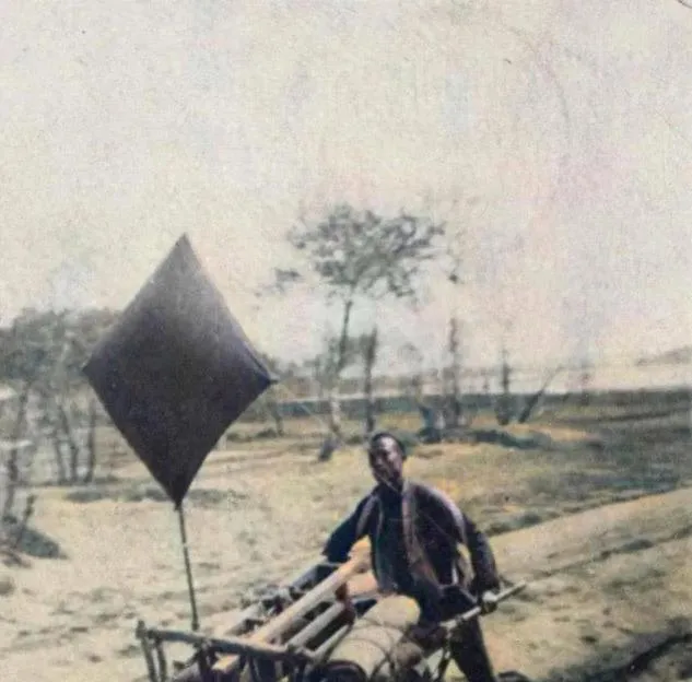 这车叫鸡公车,前头竖一面菱形风帆,杆子插在车头,风大时能推着往前溜,人省一把力,土道上车辙深,车主眯着眼顺坡往下,遇到逆风就把帆收一半,爷爷笑说老辈子见招拆招,没发动机,也能借天时,现在一脚电门就走远,当年的主意却不含糊。