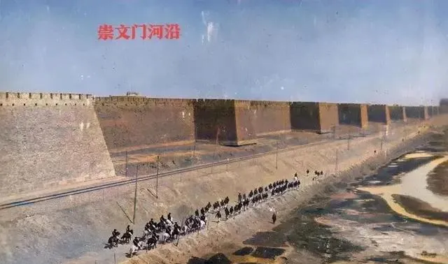 这里是崇文门河沿,城基外的斜坡长长一线马队过去,水面被风刮出细细的纹,土路压实了车辙,远处城台像一列沉默的船,爷爷说当年他从这儿扛过口袋,抬头看一眼墙,心里就知道城里城外是两种活法。