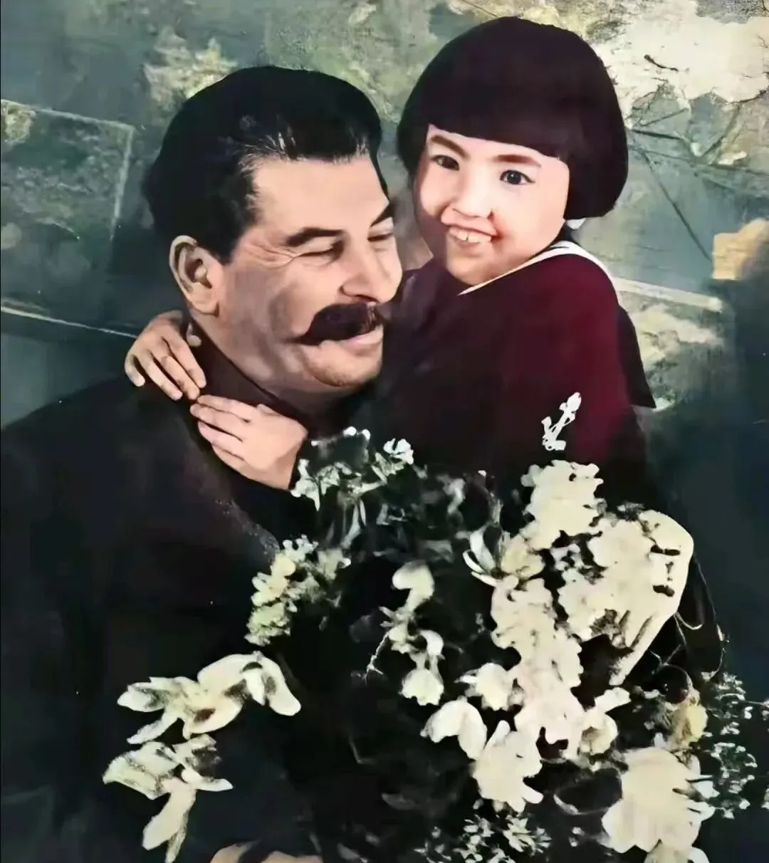 这个拥抱的画面叫领袖与小女孩,花束把前景填满了,白色花瓣堆在一起,像刚剪下来的棉絮,小女孩把手搭在脖颈上,笑弯了眼睛。外婆说,报纸上最爱用这种图,温和又有力量,孩子一出现,刀刃就收回去了,都是会说话的安排,过去宣传讲究一个“暖”,现在也一样,只是媒介从纸面变到了屏幕。