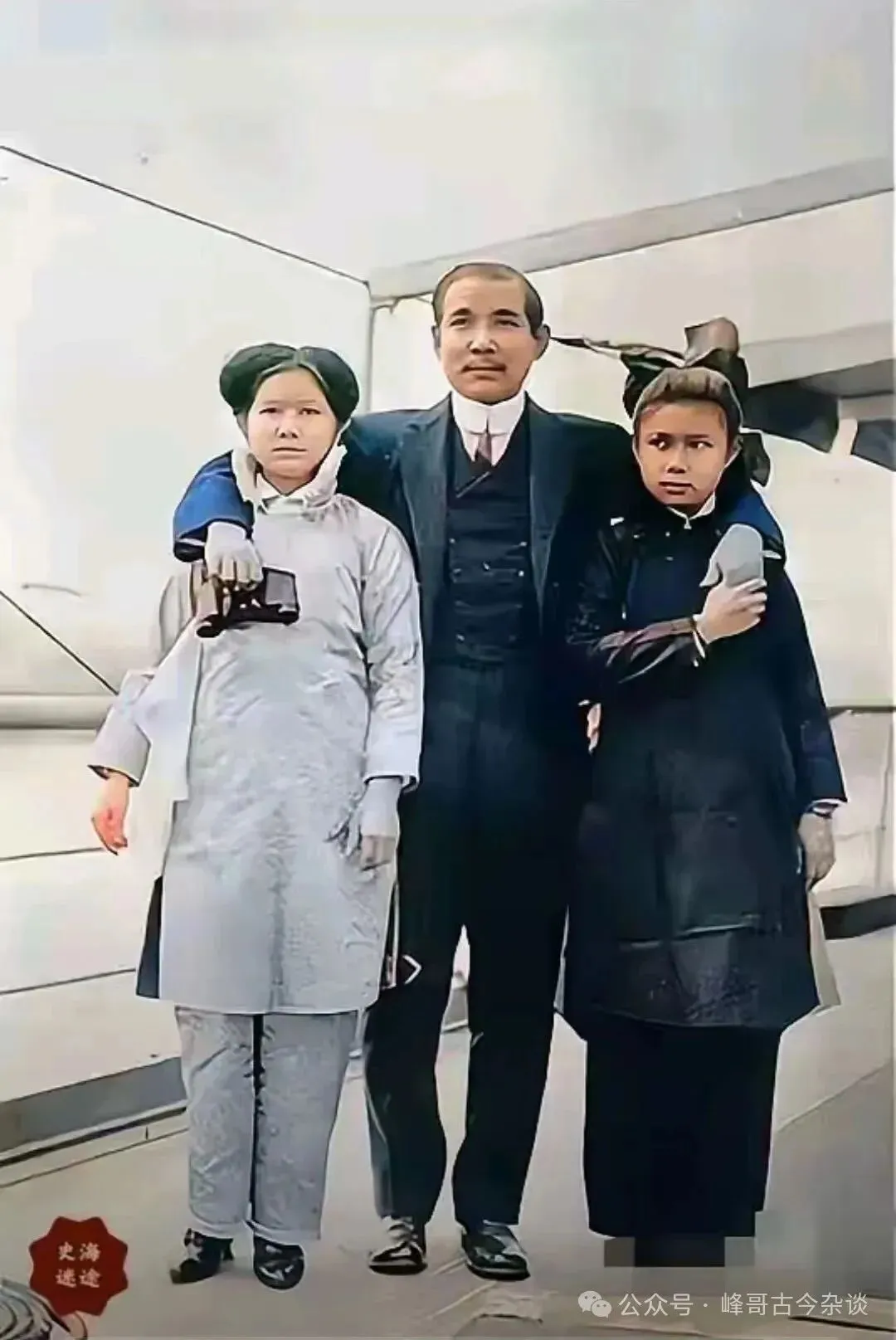 这是孙中山先生和两个女儿的合影,两个女儿是和原配妻子卢慕贞所生。大女儿孙娫,1894年3月31日出生于广东省香山翠亨村,1913年因病离世,时年19岁。