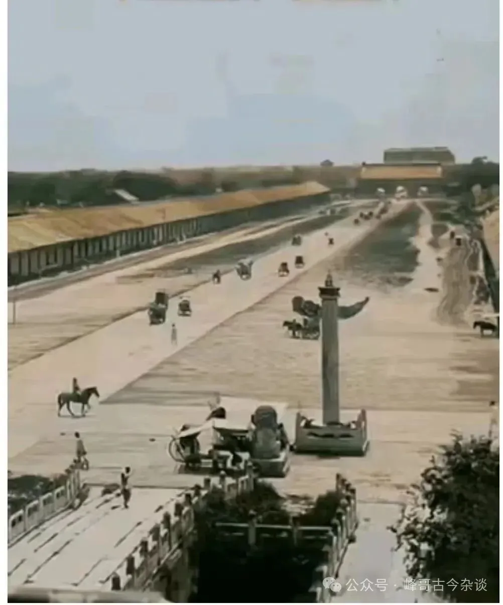 1901年的北京天安门广场,不从华表、金水桥辨认,还真不知这是哪里。广场上那一排矮房子是干什么用的?