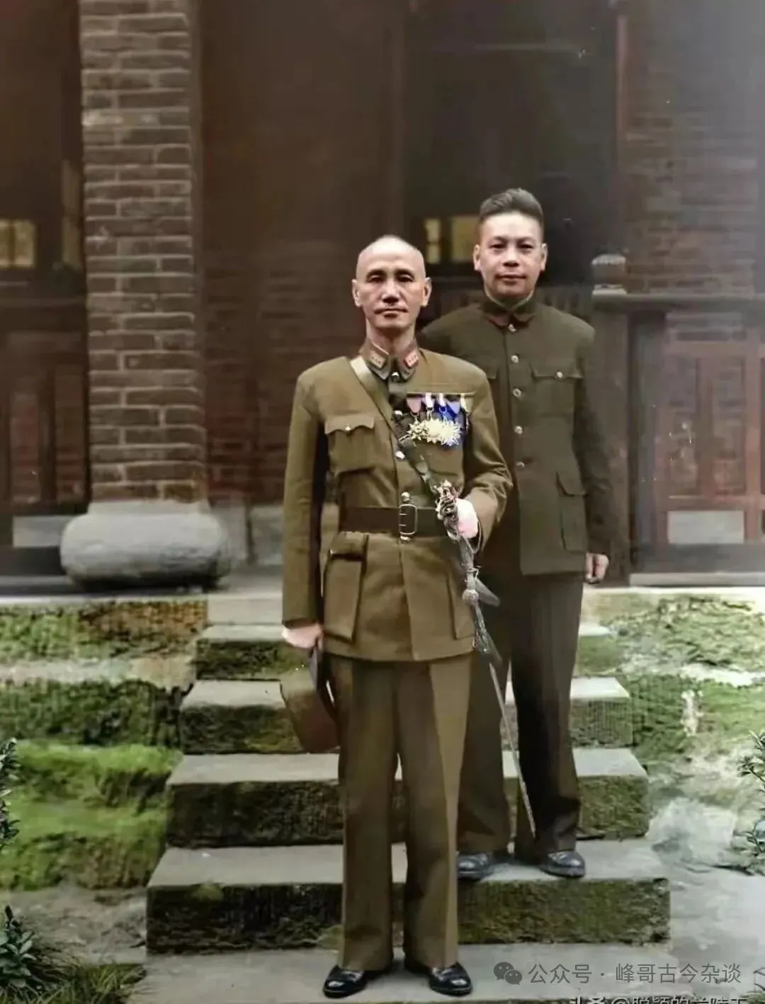 1945年9月3日,中国人民抗日战争取得伟大胜利纪念日,蒋介石和儿子蒋经国在战时陪都重庆的合影。