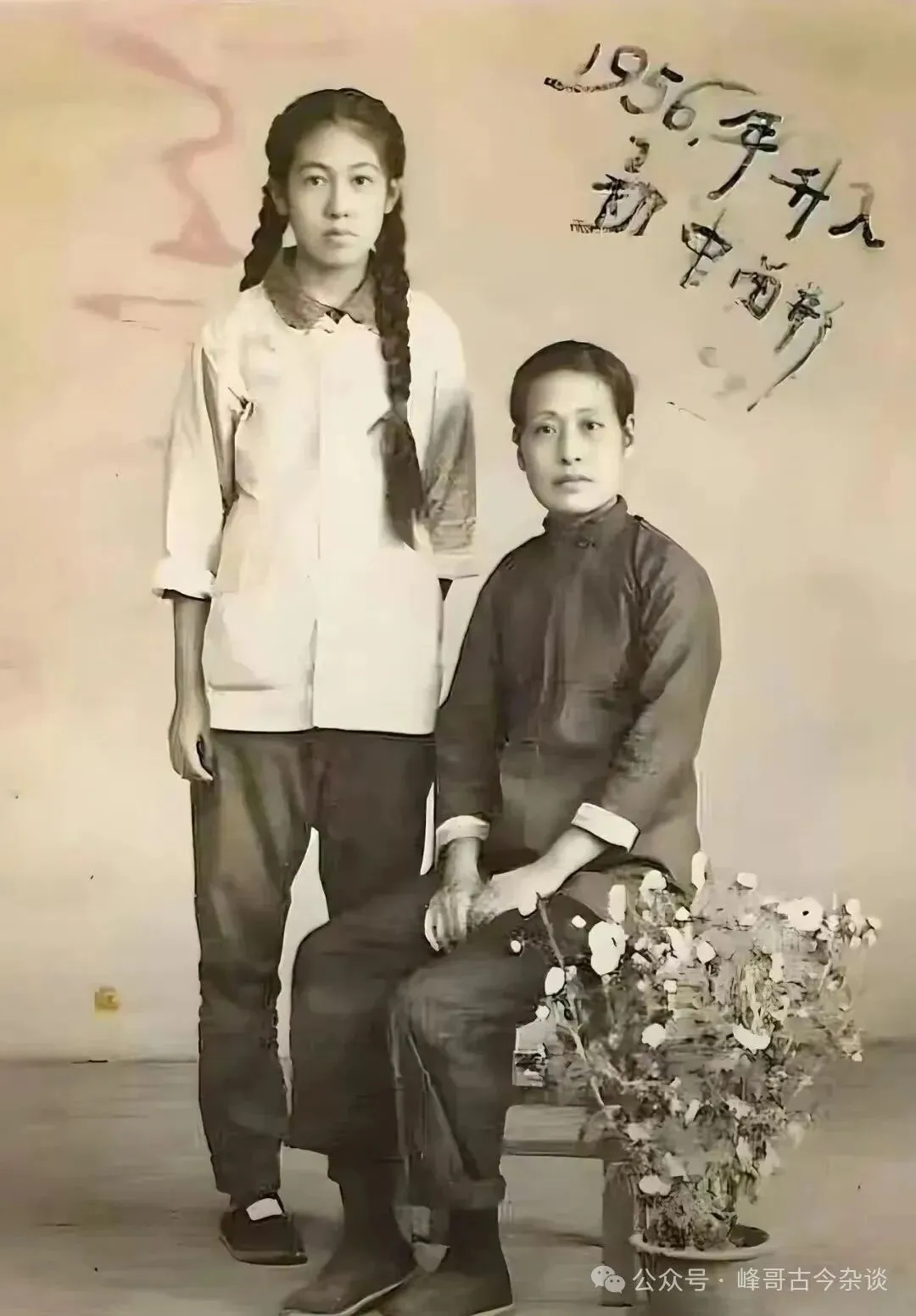 1956年,张灵甫原配和女儿的合影,虽然长得很像,其实没有血缘关系。