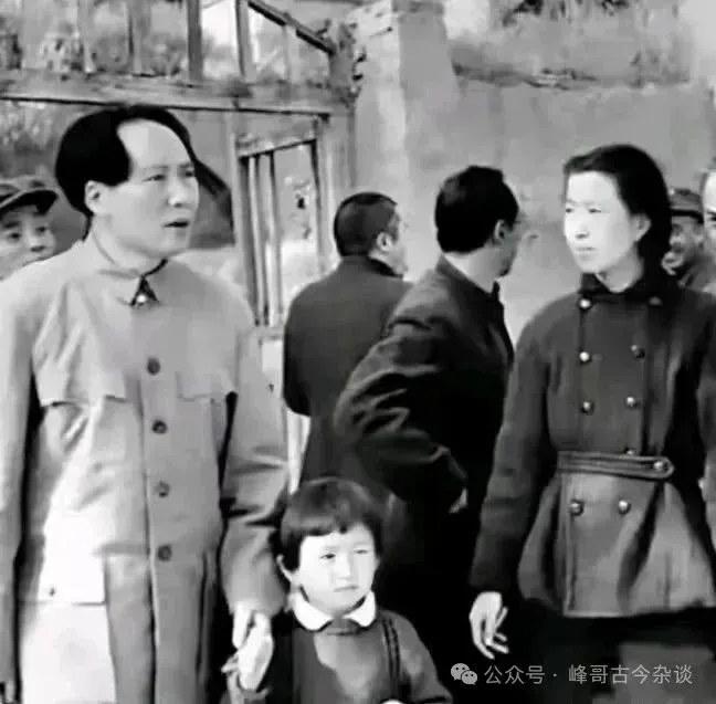 1945年10月,毛主席赴重庆谈判后,回到延安和江青、李讷在一起。