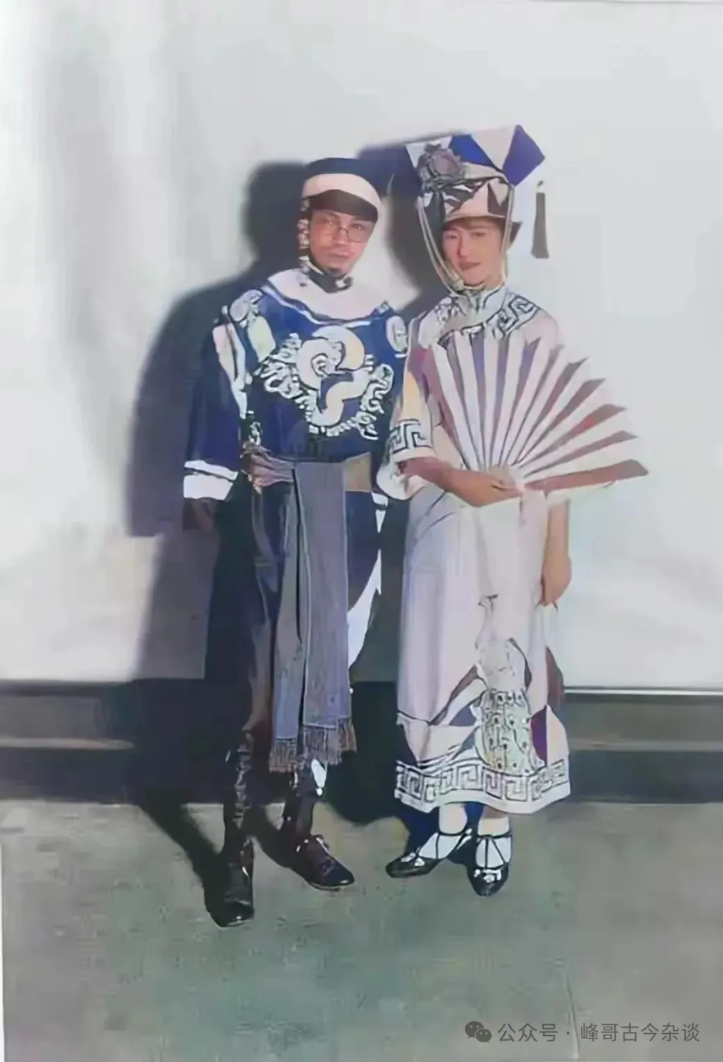 1927年,林徽因和梁思成在美国宾夕法尼亚大学晚会上的罕见合影。两人的穿着打扮非常怪异,林徽因手里还拿着一把大扇子,不知二人演的什么节目。1924年,林徽因和梁思成一起考入宾夕法尼亚大学,梁思成学习建筑学,林徽因学习美术,两人都以优异的成绩完成了学业。