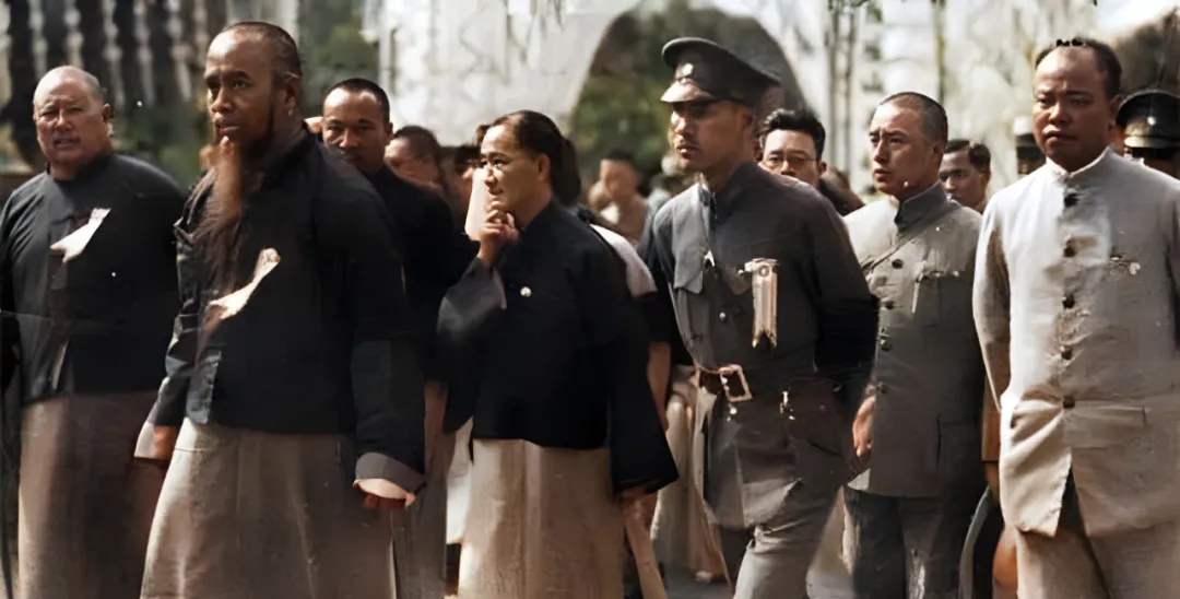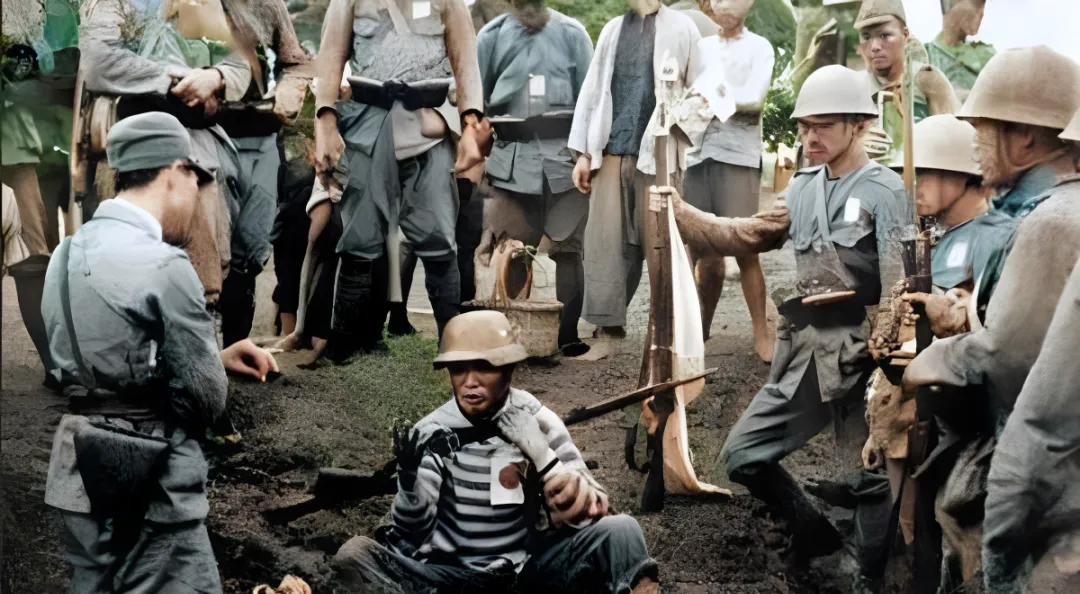 民国上色老照片:日本兵羞辱中国战俘;日军捕获杀害的我便衣志士;前线督战的吴佩孚;汪精卫之子法庭接受审讯;战犯谷寿夫等被押送到南京。