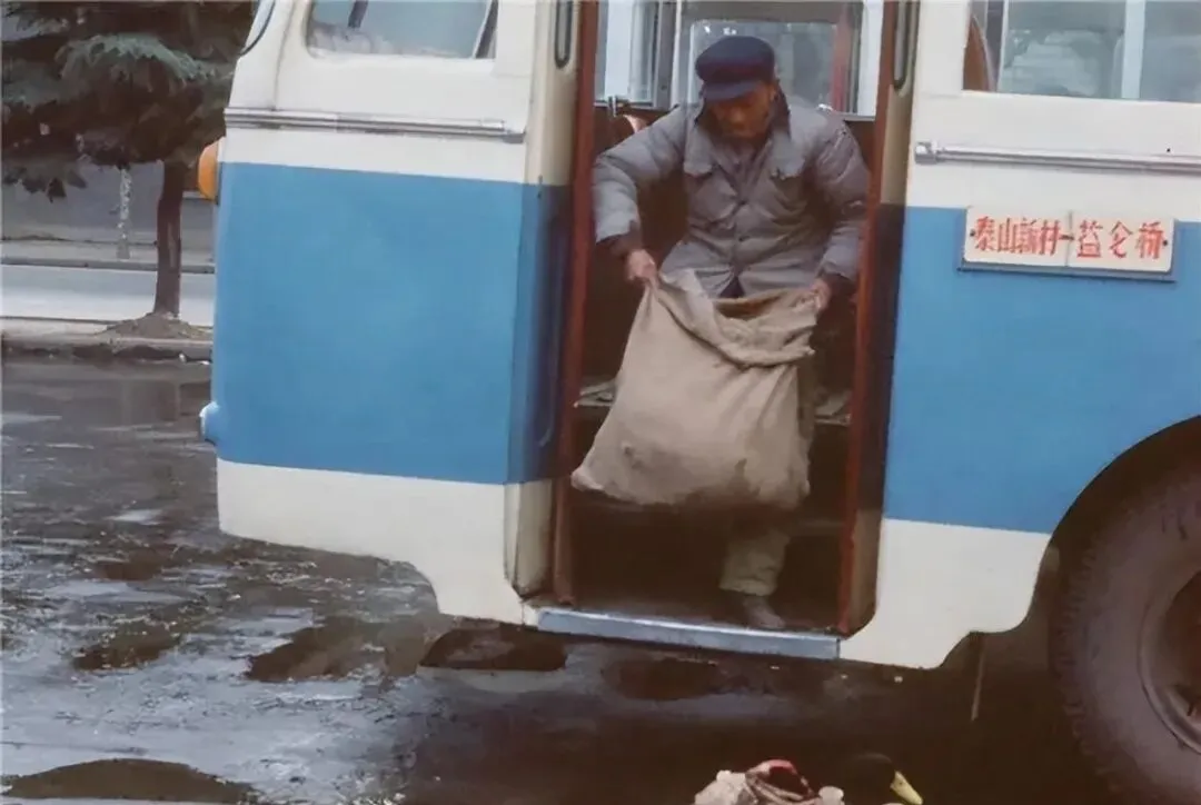 这车门边那口粗布口袋叫麻袋,师傅把肩一沉往下拽,袋口哗啦一张,露出土豆和大葱的尖儿,车轮边还蹲着两只鸭,憨得很,小时候我就爱看这种画面,车是公共的,袋子是自家的,挤在一起,一天的烟火味都齐了。