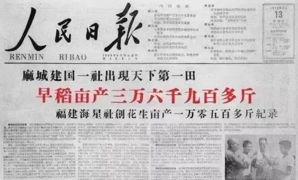 报纸上经常登载:某某公社粮食亩产超万斤,某某公社粮食亩产达14万斤,居全世界之冠