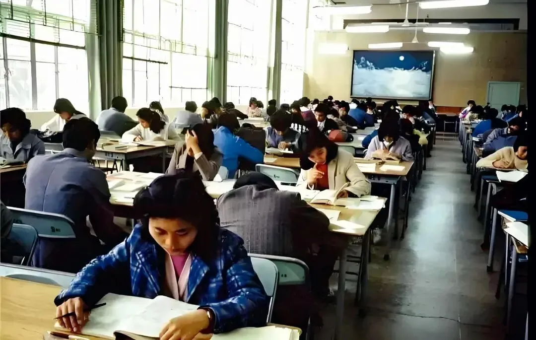 八十年代初进入大学学习的大学生,虽然穿着还很朴素,但眼神中充满了求知的渴望。
