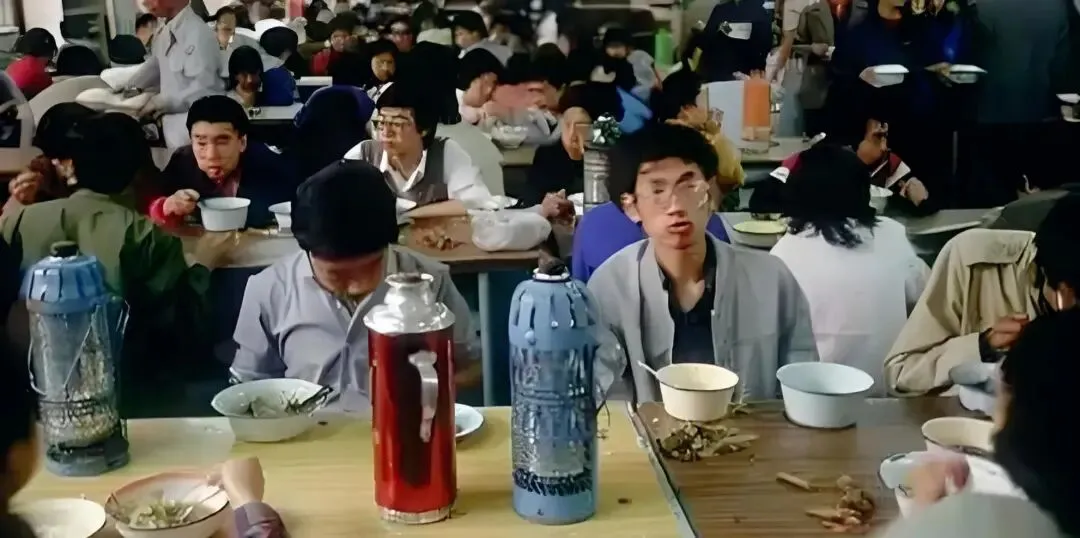 八十年代北京大学食堂学生就餐画面。能够看到就餐的座位已满,很多学生将饭菜打回宿舍。