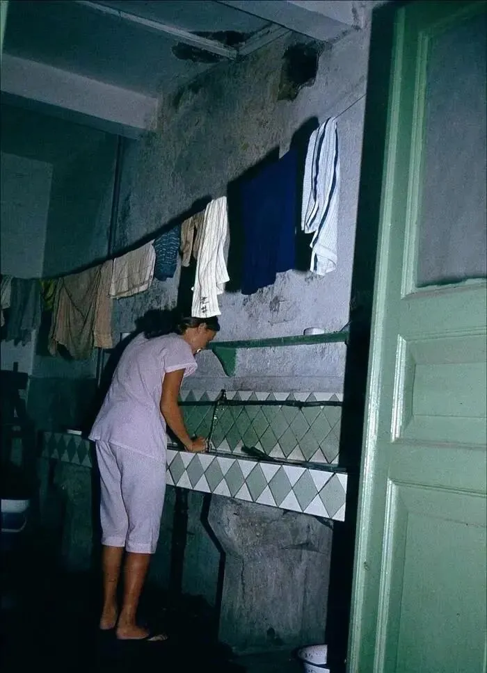 女生宿舍里的洗漱间,比较陈旧,里面还晾晒着毛巾和衣服。