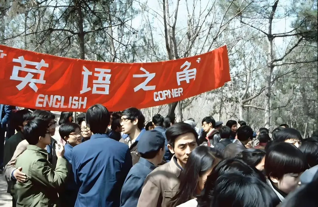 八十年代学英语的风潮开始兴起,几乎每个大学校园里都有自己的英语角。