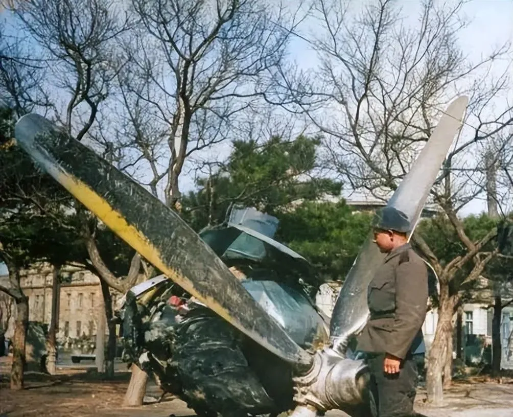 公园里这团铝壳和钢筋拧在一块的东西叫飞机螺旋桨,扇叶边缘黄漆掉了一圈,阳光一照反着冷光,旁边的看守双手背在身后打量半天,也没敢伸手碰一下,孩子们站得远远的,只敢捡几块黑乎乎的碎片当宝贝。