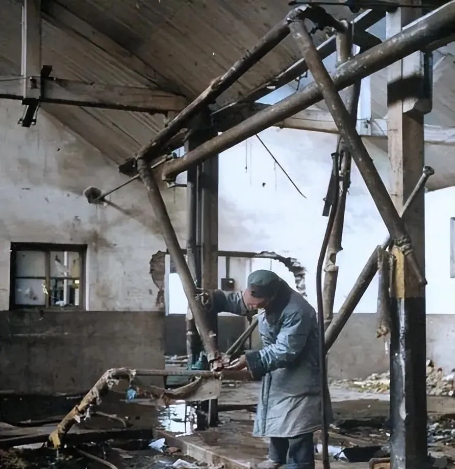 照片里这位穿蓝灰罩衣的老师傅,正攥着扳手对着一架扭曲的设备磕磕碰碰地校正,他把帽檐拉低,嘴里嘟囔一句“先把这根管子接上,能冒汽就还有救”,那会儿没有多余零件,全靠拆东墙补西墙撑着。
