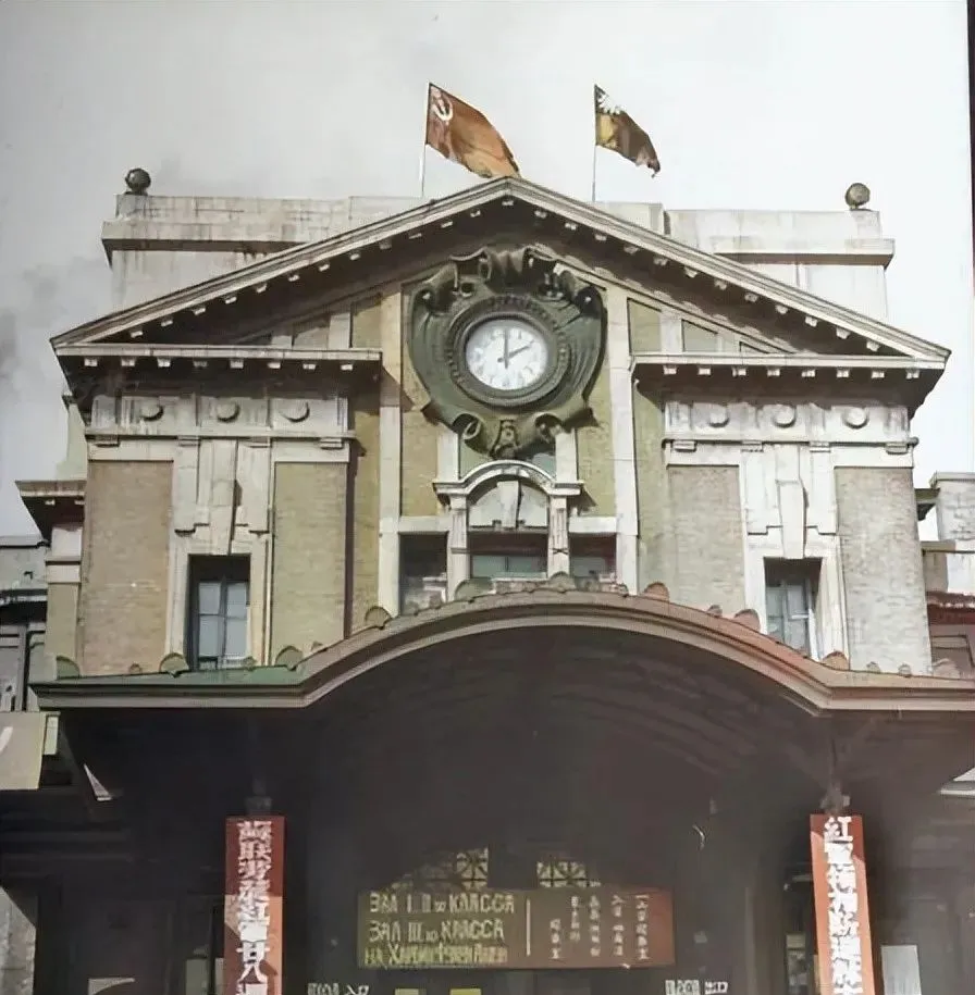 这个老车站的钟盘卡在门楣上方,指针正指着三点多,屋顶上插着两面旗,进站牌子写着密密麻麻的俄文和中文,售票口前烟雾缭绕,火车才进来一趟,人群就跟潮水一样涌过去。