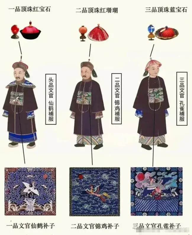 清朝官僚制度的设计十分严密。 官员的品级分为九个等级,每个级别再分成正从两级。 在如此庞大的权力金字塔中,每一个层次的晋升都是跨越鸿沟的过程。 想要一眼看出一个人的官职高低,并不需要去打听。 朝廷早就把他们分得明明白白。 密码就在官帽顶戴花翎、官服前后补子之中。