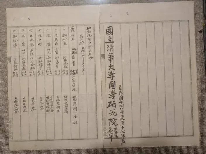 图片 清华国学研究院学生名单。 江曾 摄