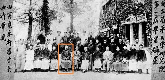 一排,左8、9、10分别为梁启超、王国维、赵元任。