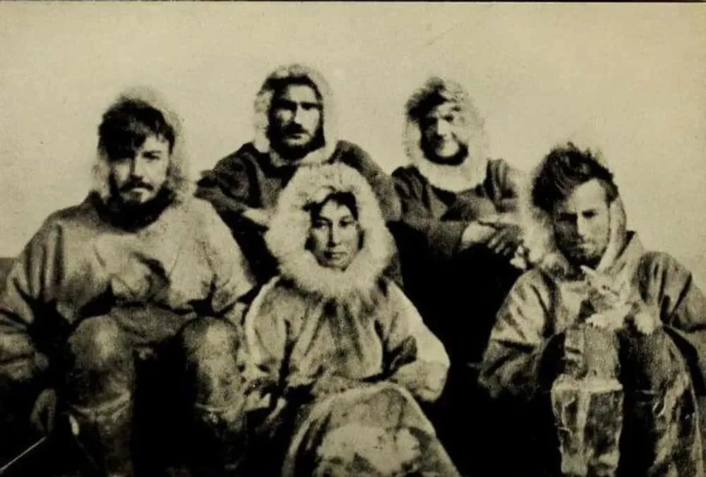 1921 年前往弗兰格尔岛的探险队,成员包括加拿大人艾伦・克劳福德、美国人洛恩・奈特、弗雷德・毛雷尔、米尔顿・加勒,还有一只名叫维多利亚(维克)的小猫,向导是因纽特少女艾达・布莱克杰克(原名德莱图克)。