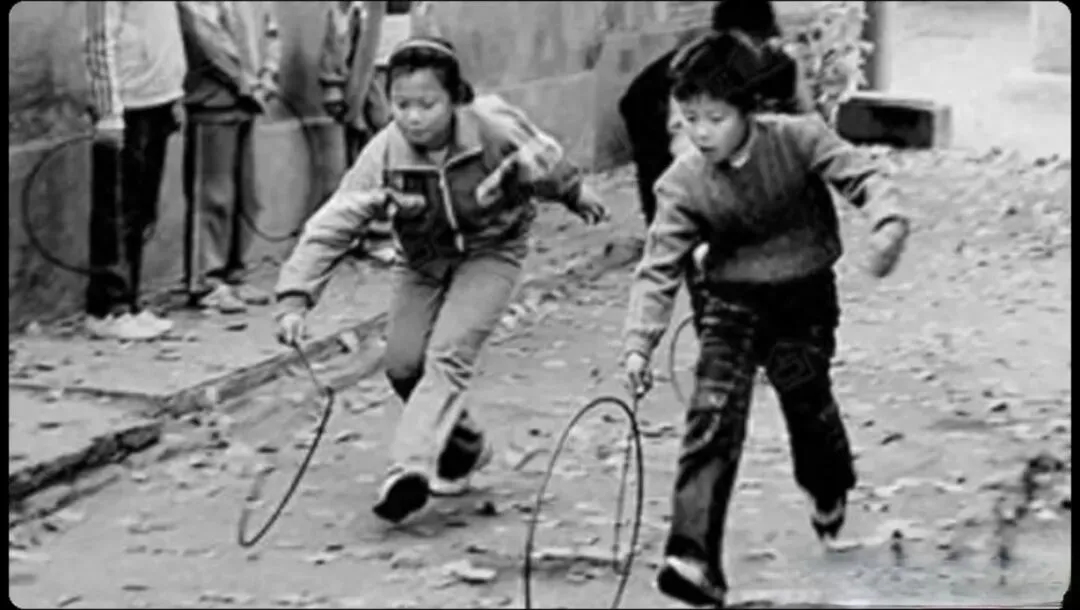 滚铁环,可不是男生的专利,女生玩起来也很疯。