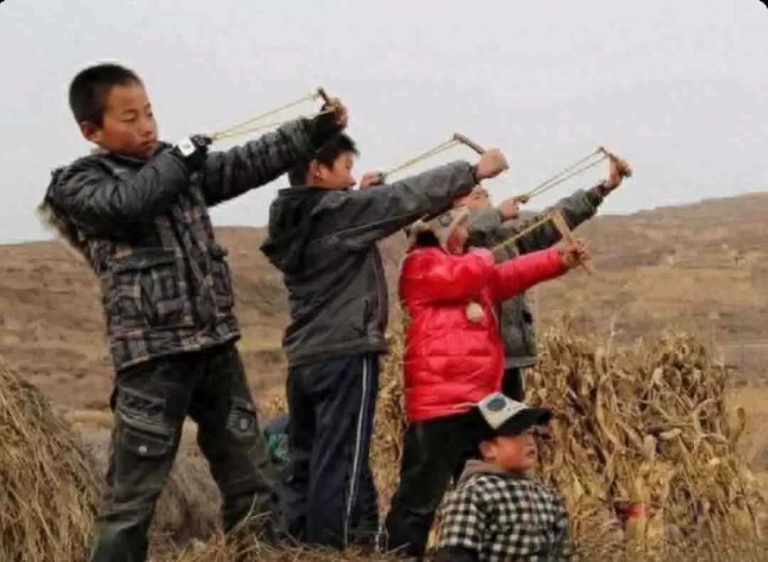 玩弹弓,勇敢男孩子的标配。其实就是调皮。