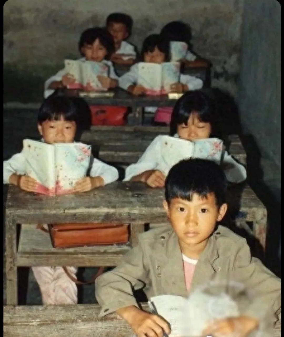 旧课桌刻满划痕,铅笔写了又擦,那道三八线小刀刻的擦不掉。没有昂贵的文具,没有舒适的环境,老师的普通话都不标准,但读书却很有热情,一点也不枯燥。