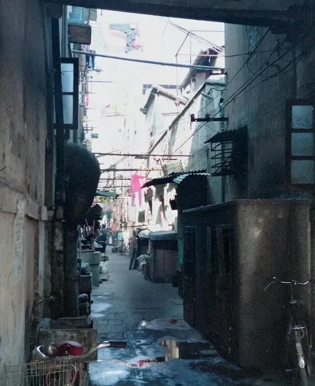 这条潮乎乎的巷道叫里弄,墙皮发白,水泥地上有水洼,抬头是一排排晾衣杆,奶奶把蓝白格子床单一抖挂上去,屋檐下摆着铝盆搪瓷缸,邻居在门口择菜聊天,猫从脚边挤过去不带看人的,那时候住得挤是挤,人情味却厚。